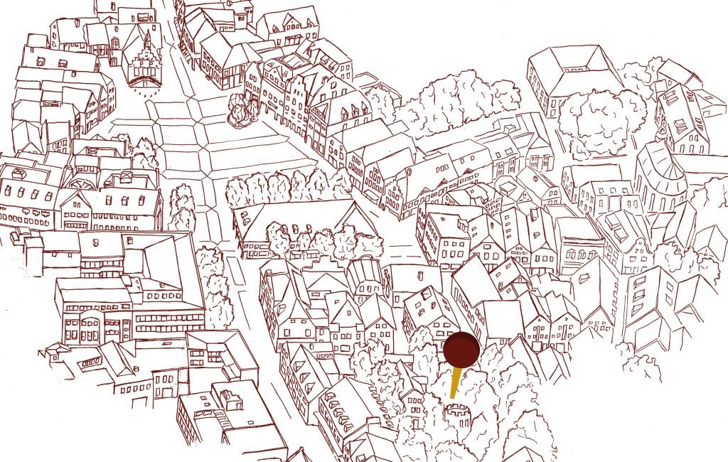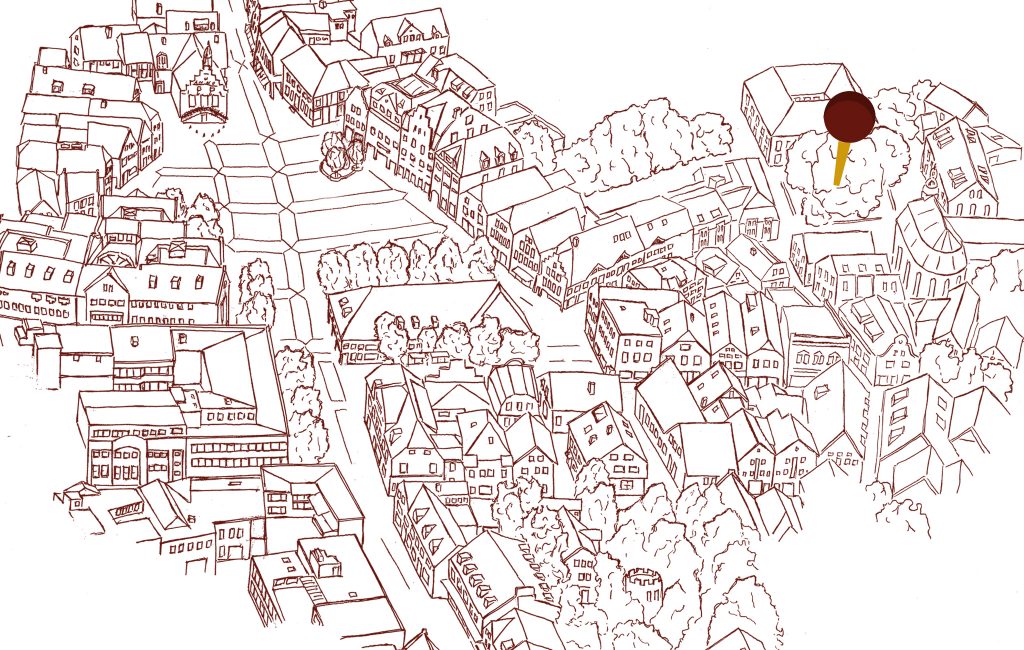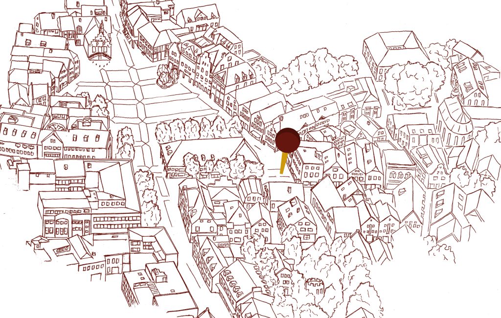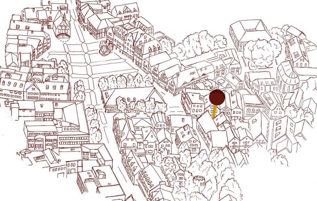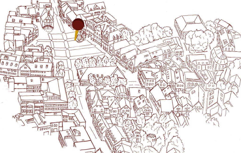 Blick auf das Markttreiben vom Podest „Königblick“